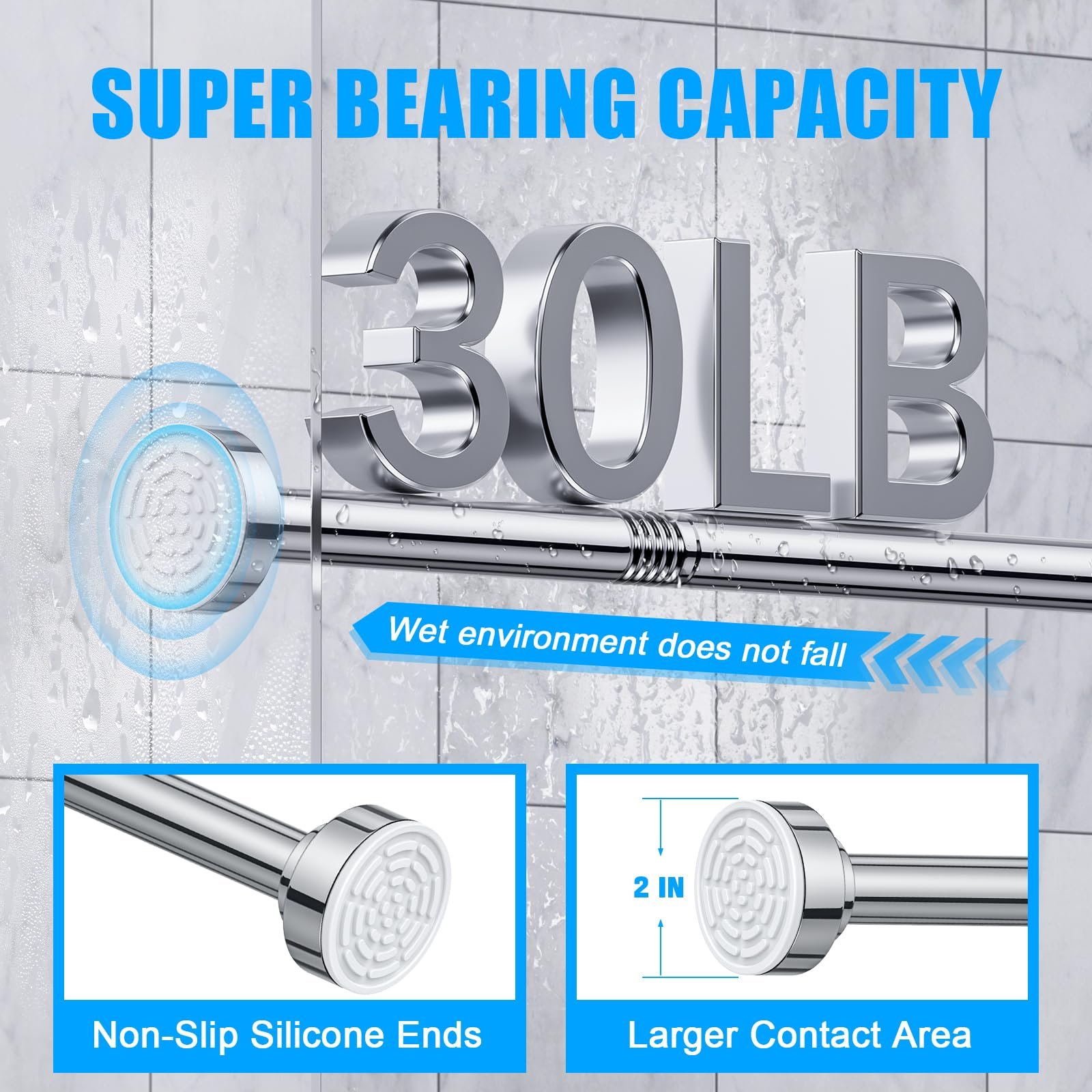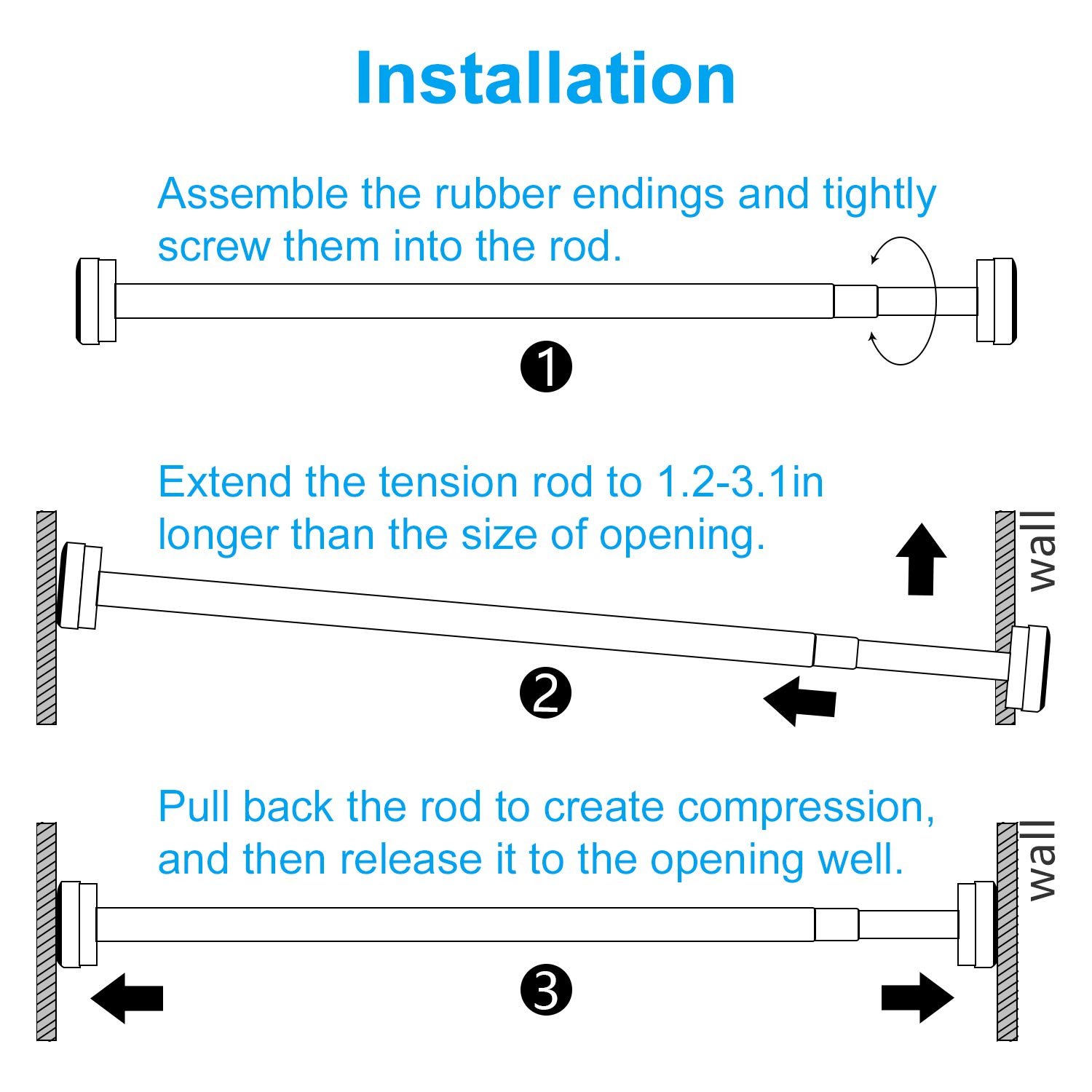 - 【Easy to Install】-The adjustable shower curtain rod is available from 32 to 80 inches. The 1 inch diameter shower curtain rod holder can hold heavy fabrics up to 30 pounds. By rotating the shower curtain rod, you can quickly and easily install the tension rod to expand or contract without drilling, screws or any tools.