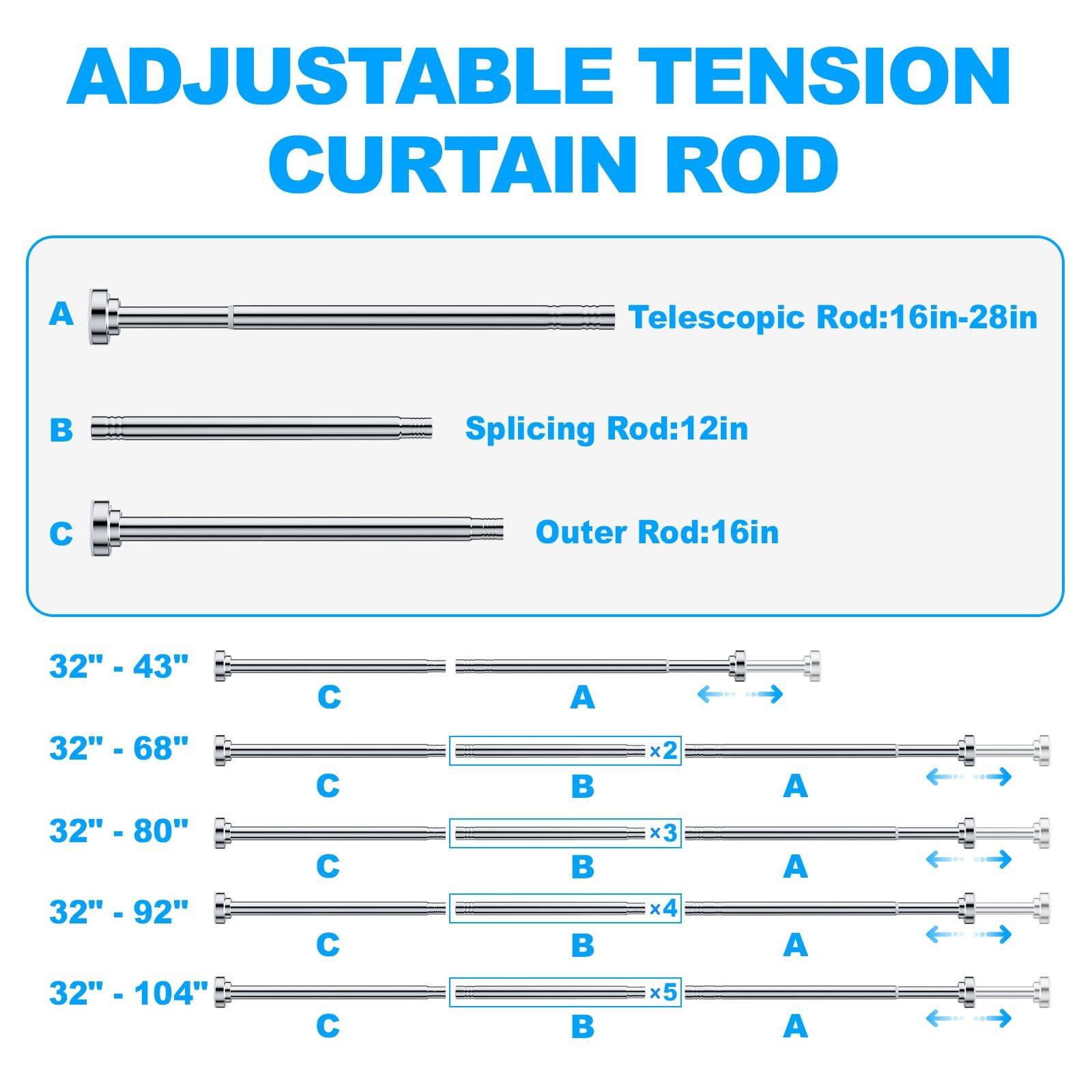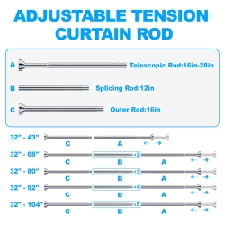 - 【Multifunctional】-This shower curtain rods can be used in many areas in your house, such as bathrooms, kitchens, bedrooms, and balconies. You can use it with a shower curtain rod at the door for privacy or with a curtains at the bedroom window for shading.