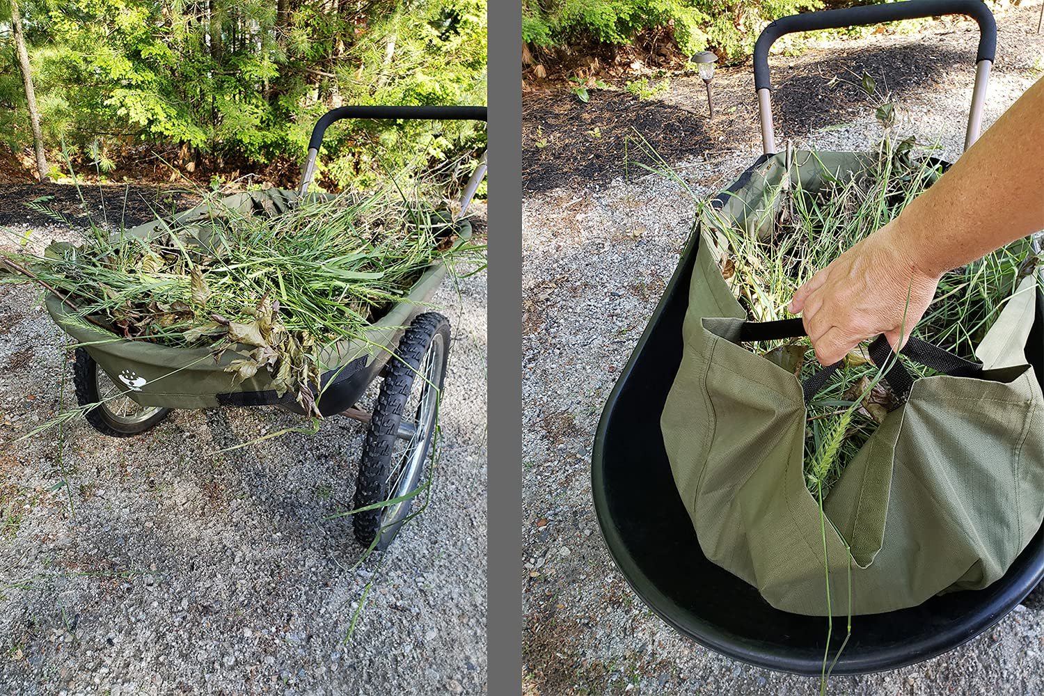- PERFECT LIFT AND EASY HANDLING: The oversized corner webbing handles make lifting, carrying, and dumping loads of garden debris incredibly easy. Whether you’re tackling fall cleanup or routine garden maintenance, this liner and cover is an essential wagon tool for making heavy loads easier to manage. Tailored to fit portable beach wagons and folding utility carts, that measure up to 40″L x 22″W x 14″H, our heavy duty wagon accessories are compatible with most standard garden & utility wagons.