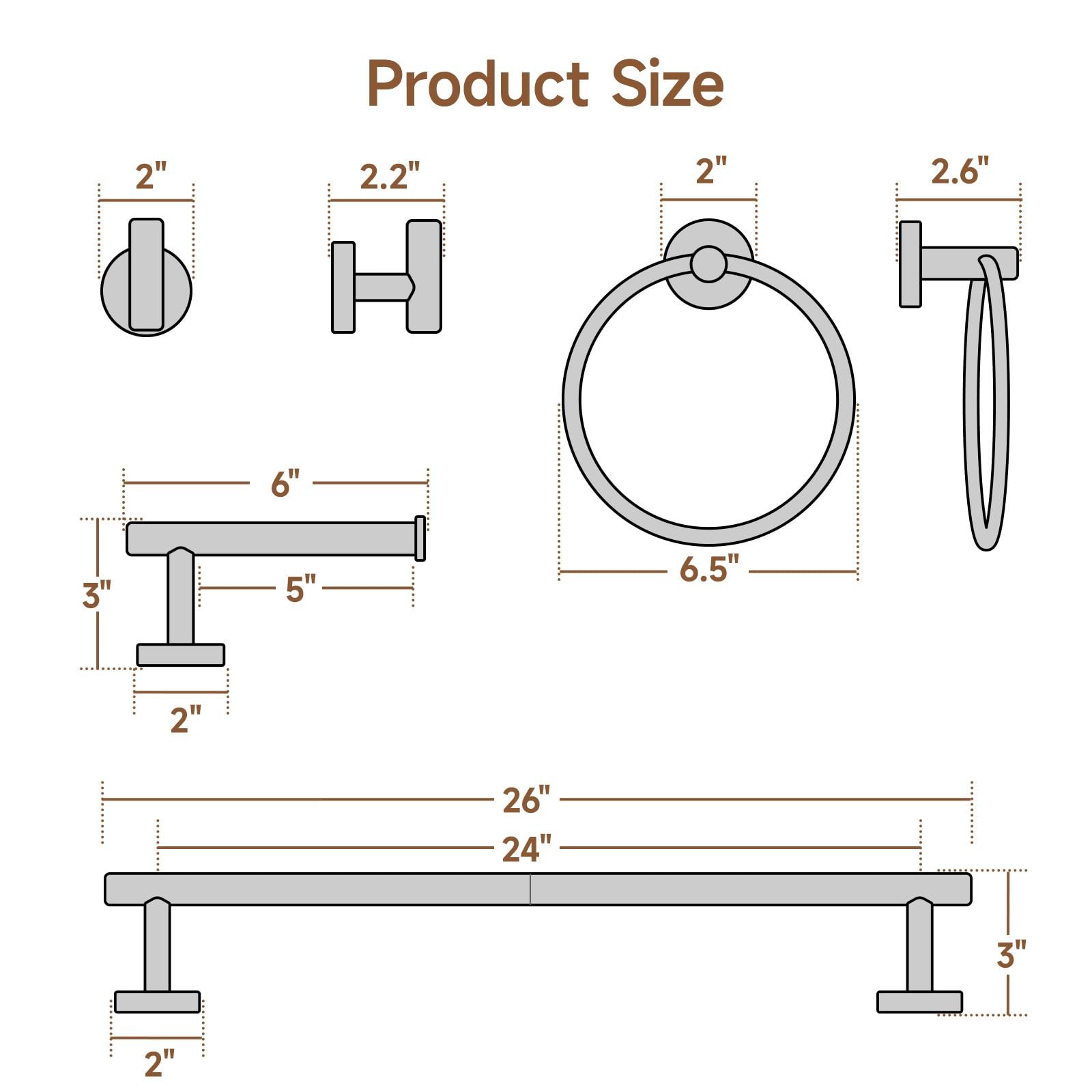 - 【Bathroom Towel Holder Set】 This convenient bath hardware set combines 4 essential bathroom accessories: a 24in towel bar, toilet paper holder, towel ring, and robe hook, allowing you to upgrade your bathroom with ease.