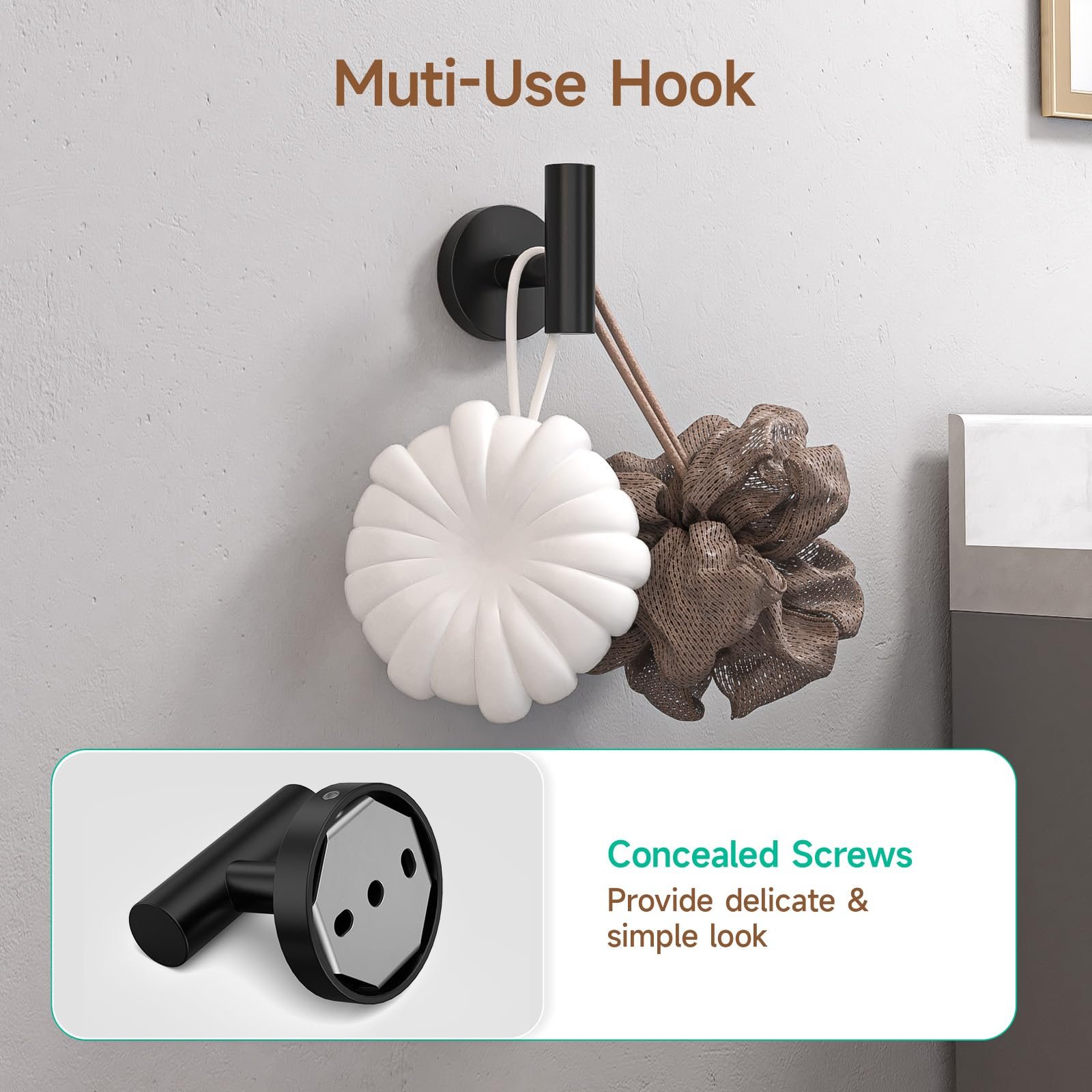 - 【Sleek Design】 Elevate your bathroom with our modern & stunning towel rack set. The concealed screw design and a matte black finish add a touch of fashion to the bathroom, effortlessly complementing various styles.