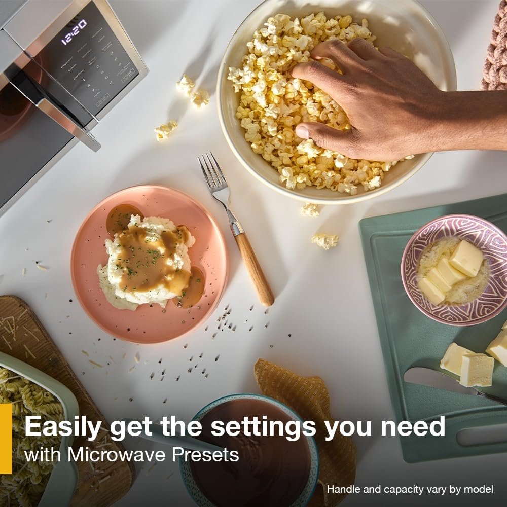 - Steam Clean: Add a bowl of water to the microwave and press Steam Clean to help lift messes, then simply wipe it away with a damp cloth for a hassle-free solution to everyday mess.