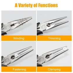 - 【Labor-saving Design】The needle-nose pliers are designed on the principle of lever. The length of the pliers wall is larger than the pliers head, so it saves more energy when using. Lengthen clamp head design, easy to use in narrow space; It has the functions of fastening, clamping, winding, cutting and stripping